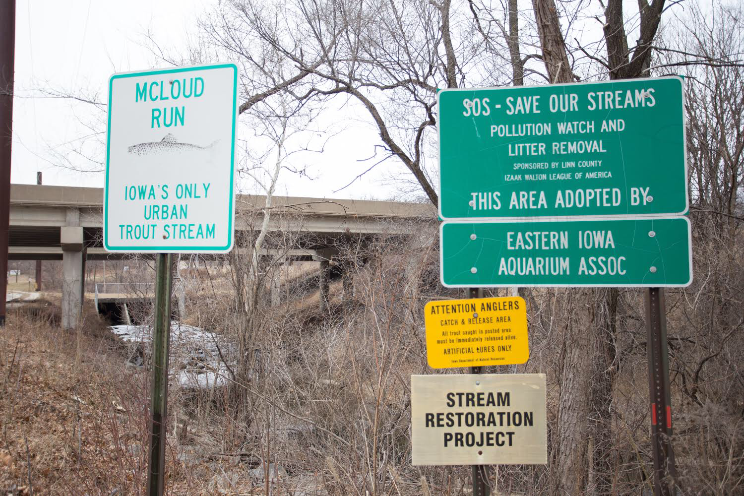 After a couple of minutes, we found it, rigged up, and drove a couple of minutes outside of town to the stream parking lot. When you look up from the bank of this stream you can see cars passing you on the major highway running in and out of town. McCloud Run is Iowa’s said only urban trout stream, and it sure was. I started fishing with a double nymph set up, but after seeing a bit more of the water and reading its geography, I quickly switch to a smaller streamer pattern to hit some of the banks. Winter fishing is quite interesting. Not only are the fish not feeding, the sun isn’t out, but half of the stream is frozen over.